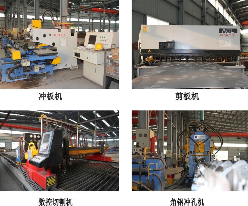 主要設(shè)備有:沖孔機(jī),剪板機(jī),角鋼沖孔機(jī),數(shù)控切割機(jī),卷板機(jī),折彎?rùn)C(jī),全自動(dòng)氣體保護(hù)焊接機(jī)等多臺(tái)國(guó)內(nèi)外先進(jìn)的生產(chǎn)設(shè)備。